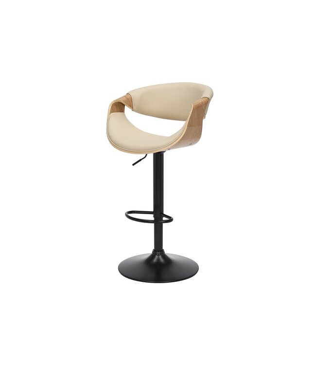 De barkruk is beschikbaar in een stijlvolle crèmekleurig beige, met een zwart frame voor een moderne uitstraling.