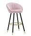 Barkruk praag rosa cm 55x56x104 is een opvallend decoratief object waarmee je moeiteloos een stijlvol accent aan je interieur toevoegt. Barkruk in roze gestoffeerd fluweel met houten poten en ronde voetsteun en pootversieringen in goudkleurig metaal die een vleugje elegantie en verfijning geven.