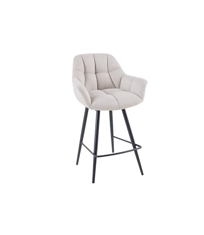 De barstoel is gemaakt van plat geweven stof (95% polyester, 5% nylon) en heeft een comfortabele schuimstoffering. Het frame is vervaardigd uit poedercoated metaal, wat zorgt voor duurzaamheid en stabiliteit.