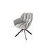 De stoel is uitgevoerd in een stijlvolle grijze kleur, terwijl het frame in een chique zwarte afwerking is uitgevoerd.