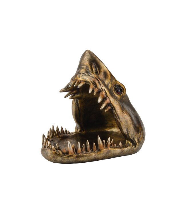 Het decoratieve beeldje van een haai is vervaardigd uit hoogwaardig polyresin en heeft een elegante bronzen afwerking. Met zijn afmetingen van 25 cm in diepte, 20 cm in breedte en 21 cm in hoogte, is het een opvallend stuk dat perfect past in elke ruimte. Dit beeldje is met zorg handgemaakt en gelakt, waardoor het een luxe uitstraling heeft.
