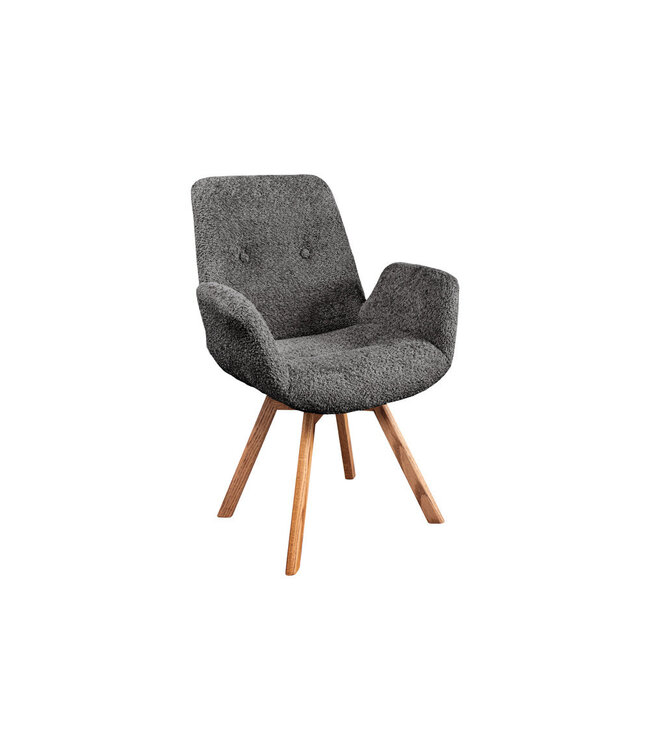 Draaistoel BALTIC - 360° draaibaar, donkergrijs met eikenhouten poten