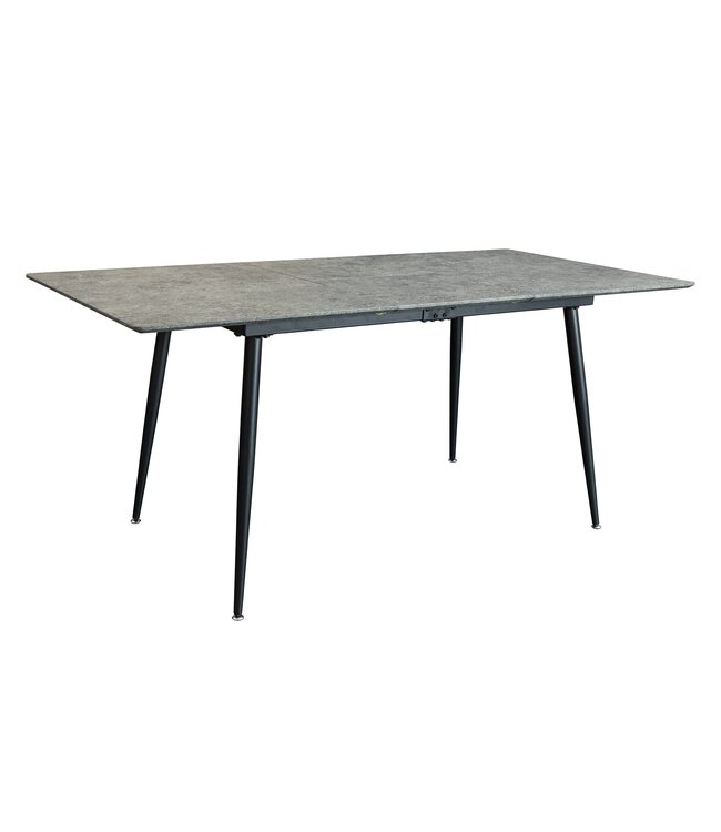 Breng een stedelijke uitstraling en moeiteloze stijl naar uw eetruimte met de APARTMENT – een uittrekbare tafel die zich aanpast aan elke gelegenheid. Met zijn grijs stenen look blad en stevige zwarte metalen frame is hij perfect voor casual maaltijden, levendige dinerfeestjes of alles daartussenin.