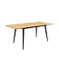 De tafel is gemaakt van MDF met echt wild eikenhout fineer en heeft een stevig metalen frame in zwart.