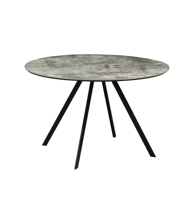 Eettafel ATELIER 120 cm rond, grijze steenlook met zwarte metalen poten