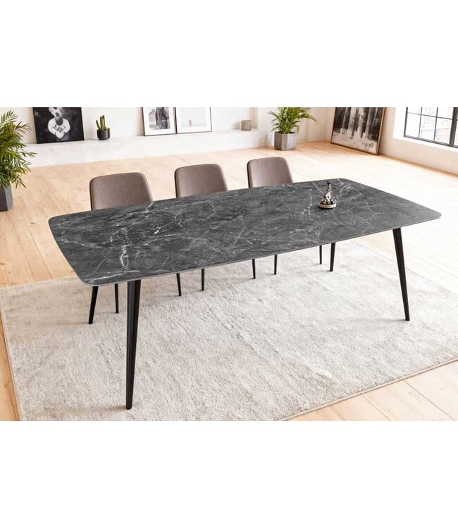 Met zijn afmetingen van 180 x 90 cm biedt de eettafel MILANO voldoende ruimte voor ongeveer acht personen, waardoor het de ideale ontmoetingsplaats is voor familie en vrienden. Of het nu gaat om een dagelijks diner of een stijlvol diner met gasten, deze tafel maakt een statement in huis. Onze tip: Combineer de eettafel met elegante fluwelen stoelen in gedempte kleuren zoals rosé, antraciet of donkergroen. Modellen met een zwart of gouden montuur zien er bijzonder harmonieus uit. Accessoires zoals eenvoudige vazen, moderne hanglampen of een tapijt in natuurlijke tinten ronden het totaalbeeld ook perfect af.