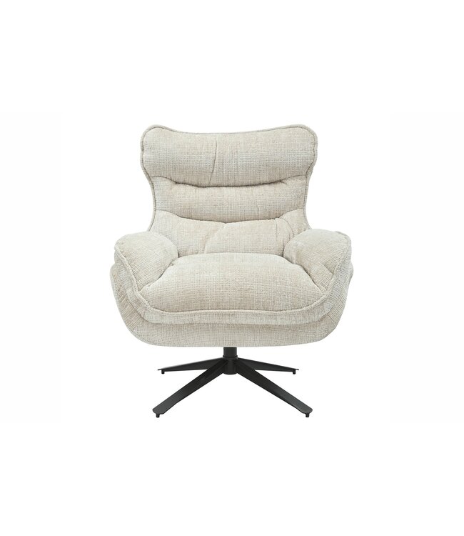 Verlies jezelf in het luxe comfort van de CLOUD 360° fauteuil in elegante champagnebeige. Deze fauteuil is ontworpen om je moeiteloos door ontspanning en stijl te laten draaien. Met een slank zwart metalen frame en een comfortabele draaistoel voelt elk moment alsof je op een wolk van genot zit.