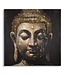Handgemaakte muurschildering boeddha -b- cm 100x3x100 is een opvallend decoratief object waarmee je moeiteloos een stijlvol accent aan je interieur toevoegt. Schilderij op doek, compleet met houten frame met afbeelding van het gezicht van boeddha met elegante gouden applicaties.