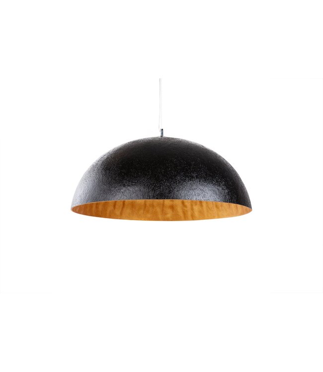 De lamp is uitgevoerd in een chique zwarte kleur met gouden accenten, wat zorgt voor een luxe uitstraling.