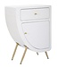Hoog nachtkastje venus cm 60x32x79 is een opvallend decoratief object waarmee je moeiteloos een stijlvol accent aan je interieur toevoegt. Wit houten nachtkastje met afgeronde lijnen die doen denken aan het moderne design van de jaren 70. compleet met lade en deur. gouden metalen poten om in elkaar te zetten.