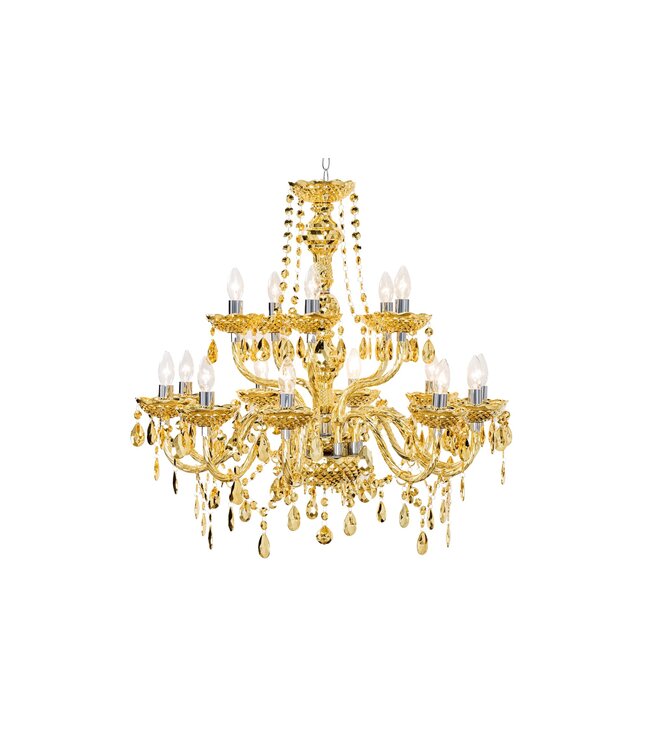 Kroonluchter met kristallen, 15 armen, goudkleurig