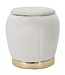 Krukje/opslag parijs crema/goud cm ø 43x43 is een opvallend decoratief object waarmee je moeiteloos een stijlvol accent aan je interieur toevoegt. Crèmekleurige houten en fluwelen opbergpoef. stoelen met een gouden afwerking geïnspireerd op de kleedkamers van de grote hollywood-diva's. ideaal om in de slaapkamer of woonkamer te plaatsen om je als een ster te voelen.