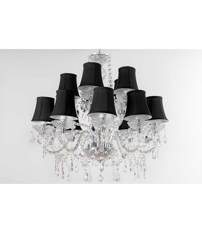 Deze set bevat 15 hoogwaardige lampenkappen, allemaal afgewerkt in een elegante, diepe zwarte kleur die moeiteloos bij elk interieur past. Let op: dit product wordt geleverd zonder de kroonluchter zelf, zodat je de vrijheid hebt om deze prachtige kappen te combineren met jouw unieke armatuur voor een werkelijk persoonlijk statement.