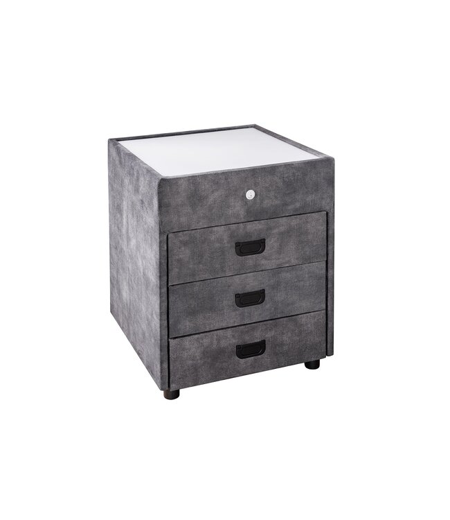 Het PARIS nachtkastje combineert modern design met zacht grijs fluweel en een ingebouwde LED-verlichting die een warme gloed aan uw avonden toevoegt. Druk eenvoudig meerdere keren op de aan/uit-knop om de LED-kleur te veranderen en de perfecte sfeer te creëren.