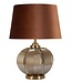 Praag tafellamp -h- cm 40,5x57 is een opvallend decoratief object waarmee je moeiteloos een stijlvol accent aan je interieur toevoegt. De prague tafellamp is een elegante samensmelting van klassieke en moderne stijl. de bolvormige voet in bewerkt glas, verrijkt met gouden details, past perfect bij de bruine tint en creëert een warme en verfijnde verlichting, ideaal voor glamoureuze en verfijnde omgevingen.