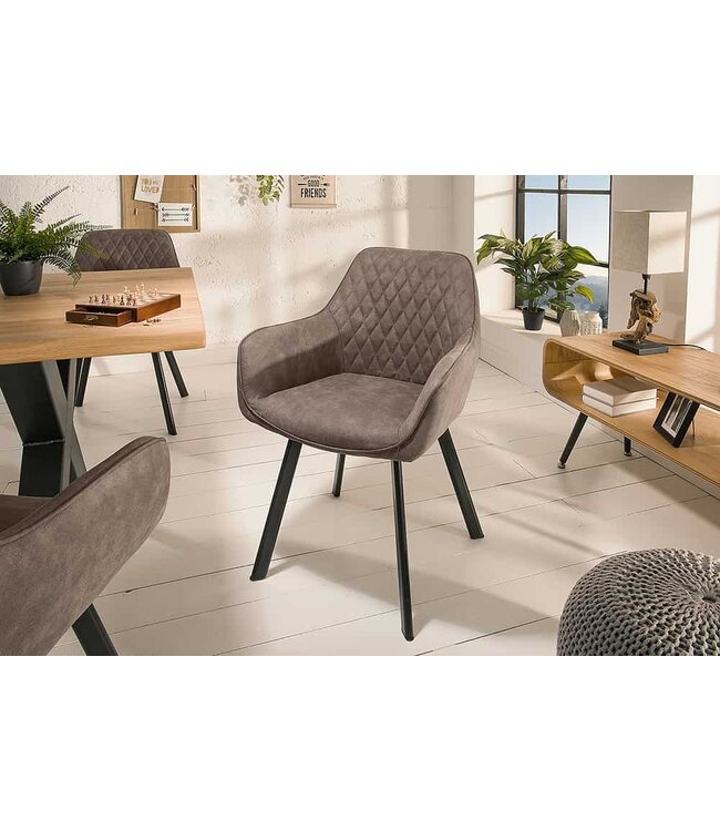 Deze tijdloze stoel in trendy retrostijl past werkelijk in elke sfeer. De geslaagde combinatie van hoogwaardige microvezelbekleding en zwart metalen poten in het typische, wijd uitlopende design is veelzijdig te combineren en straalt elegantie en stijlvol zelfvertrouwen uit. Uiteraard is de zitschaal comfortabel gevoerd en voorzien van twee armleuningen die voor extra zitcomfort zorgen.