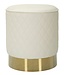 Ronde kruk sharon cm ø36x39 is een opvallend decoratief object waarmee je moeiteloos een stijlvol accent aan je interieur toevoegt. Ronde witte gewatteerde leren poef met gouden basis die een vleugje heldere weelde toevoegt aan elke ruimte.