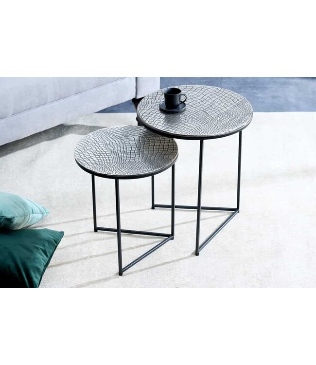 Ontdek het exclusieve krokodillendesign dat je woonkamer een uniek tintje geeft. Onze ronde tafels in antiek zilverlook zijn niet alleen handgemaakt, maar ook uniek. Iedere tafel, groot of klein, heeft het opvallende krokodillenpatroon en maakt een bijzonder statement in je huis. Geef uw woonsfeer een vleugje handgemaakte elegantie door te vertrouwen op tijdloos design en robuuste kwaliteit. Deze moderne bijzettafels passen perfect bij de sfeer in uw woonruimte.