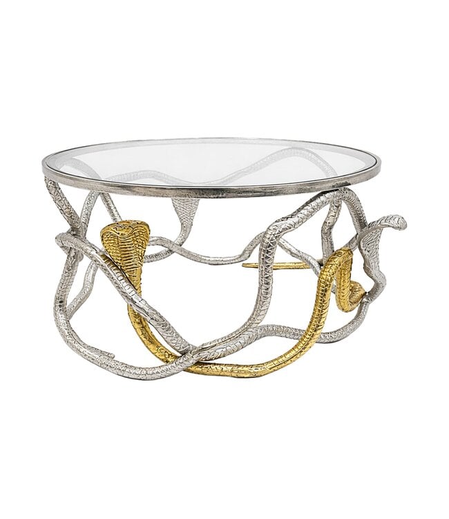 Salontafel COBRA 70 cm zilvergoud met glazen blad