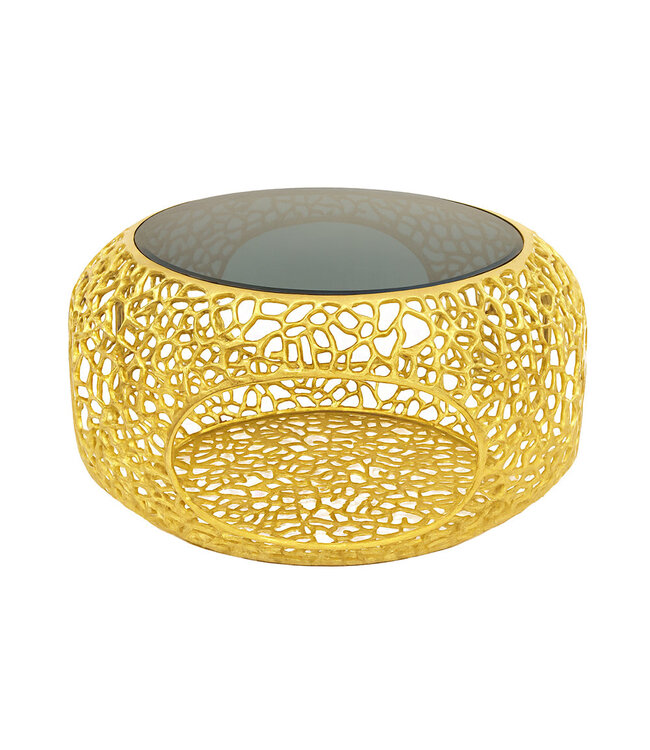 De SPIN koffietafel is een statement piece dat elegant zwart, gehard glas combineert met een gedurfde gouden metalen basis voor een verfijnde, moderne uitstraling. Ontworpen om hedendaagse woonruimtes te verfraaien, biedt het zowel visuele impact als duurzame vakmanschap en tijdloze elegantie.