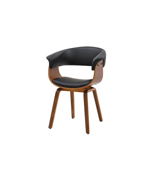 Stoel ORGANIC kunstleer zwart met walnoothouten look