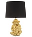 Tafellamp aap mum cm ø 30x49 is een opvallend decoratief object waarmee je moeiteloos een stijlvol accent aan je interieur toevoegt. Tafellamp in de vorm van een gouden zittende aap met zwarte stoffen kap