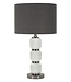 Tafellamp bright drie cm ø 32,5x57 is een opvallend decoratief object waarmee je moeiteloos een stijlvol accent aan je interieur toevoegt. Elegante tafellamp met witte glazen voet en grijze fluwelen kap straalt moderniteit uit, perfect om elke hoek van uw huis in stijl te verlichten.