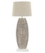Tafellamp eclips tower cm ø 38x90 is een opvallend decoratief object waarmee je moeiteloos een stijlvol accent aan je interieur toevoegt. Resin tafellamp met elegante geometrische decoraties in reliëf. compleet met beige stoffen lampenkap.