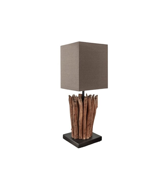 Tafellamp EUPHORIA met bruine linnen kap in drijfhoutkleur