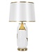 Tafellamp keramiek cm ø 40x70 is een opvallend decoratief object waarmee je moeiteloos een stijlvol accent aan je interieur toevoegt. Tafellamp in wit en goudkleurig keramiek versierd met elegante bladeren, compleet met witte stoffen lampenkap met gouden randen.