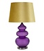 Tafellamp milva drie cm ø 40x70 is een opvallend decoratief object waarmee je moeiteloos een stijlvol accent aan je interieur toevoegt. Charmante lamp met paarse glazen voet en goudfluwelen lampenkap: elegantie vermengt zich met mysterie in een spel van licht en schaduw dat suggestief en warm is.