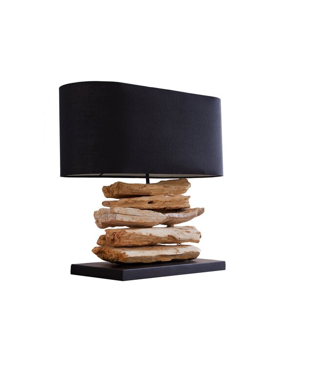 Tafellamp RIVERINE II met zwarte linnen kap in drijfhoutkleur