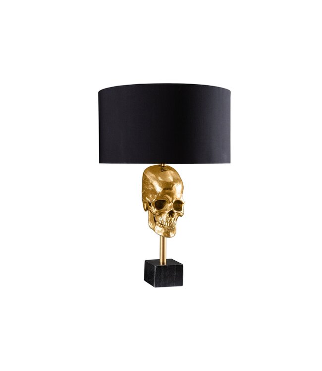 Tafellamp SKULL 56cm goudkleurige katoenen kap zwart