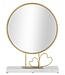 Tafelspiegel hart cm 30x9x39,5 is een opvallend decoratief object waarmee je moeiteloos een stijlvol accent aan je interieur toevoegt. Ronde tafelspiegel met gouden metalen frame en wit marmeren voet verfraaid met een elegant paar harten.