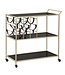 Trolley zwart touw cm 79x39,5x82 is een opvallend decoratief object waarmee je moeiteloos een stijlvol accent aan je interieur toevoegt. Voedseltrolley en flessenhouder in goudkleurig metaal met 3 plateaus van spiegelglas, compleet met praktische wielen. er kunnen 9 flessen in. het eenvoudige en lineaire ontwerp maakt het een aanvulling die perfect past bij elk type meubel.