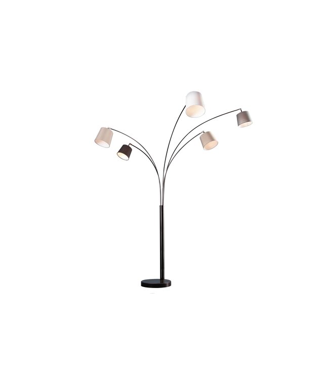 Vloerlamp LEVELS - 5 linnen kappen in zwart, grijs en wit met marmeren voet