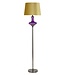Vloerlamp milva one cm ø 40x167 is een opvallend decoratief object waarmee je moeiteloos een stijlvol accent aan je interieur toevoegt. Charmante lamp met paarse glazen voet, elegantie vermengt zich met mysterie in een spel van licht en schaduw suggestief en warm. compleet met gouden fluwelen lampenkap