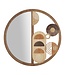 Wandspiegelblok cm ø 80x3 is een opvallend decoratief object waarmee je moeiteloos een stijlvol accent aan je interieur toevoegt. Ronde wandspiegel verfraaid met een elegante compositie van houten onderdelen in verschillende vormen en kleuren.