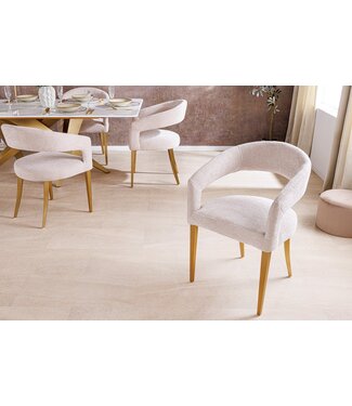 Scandinavische stoel BOUTIQUE beige structuurstof geborsteld champagne goud metaal - 45923